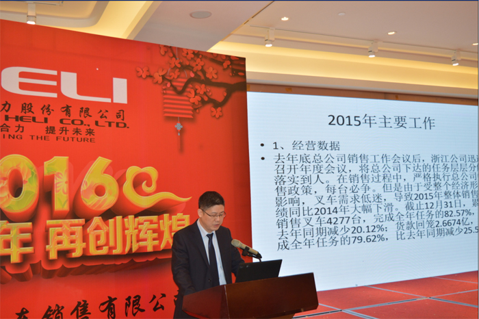 1月20日,杭州合力2015年總結(jié)暨表彰會(huì)在杭州舉行,公司領(lǐng)導(dǎo)、全體員工同聚一堂,共襄大會(huì)。年會(huì)在嚴(yán)肅活躍的氣氛中開(kāi)場(chǎng),首先,公司圣勇斌總經(jīng)理以數(shù)字化、具象化的方式總結(jié)布置了2015年的營(yíng)銷工作和2016年的工作計(jì)劃。并期望大家從總結(jié)中提高認(rèn)識(shí),推動(dòng)營(yíng)銷工作不斷邁上新臺(tái)階。