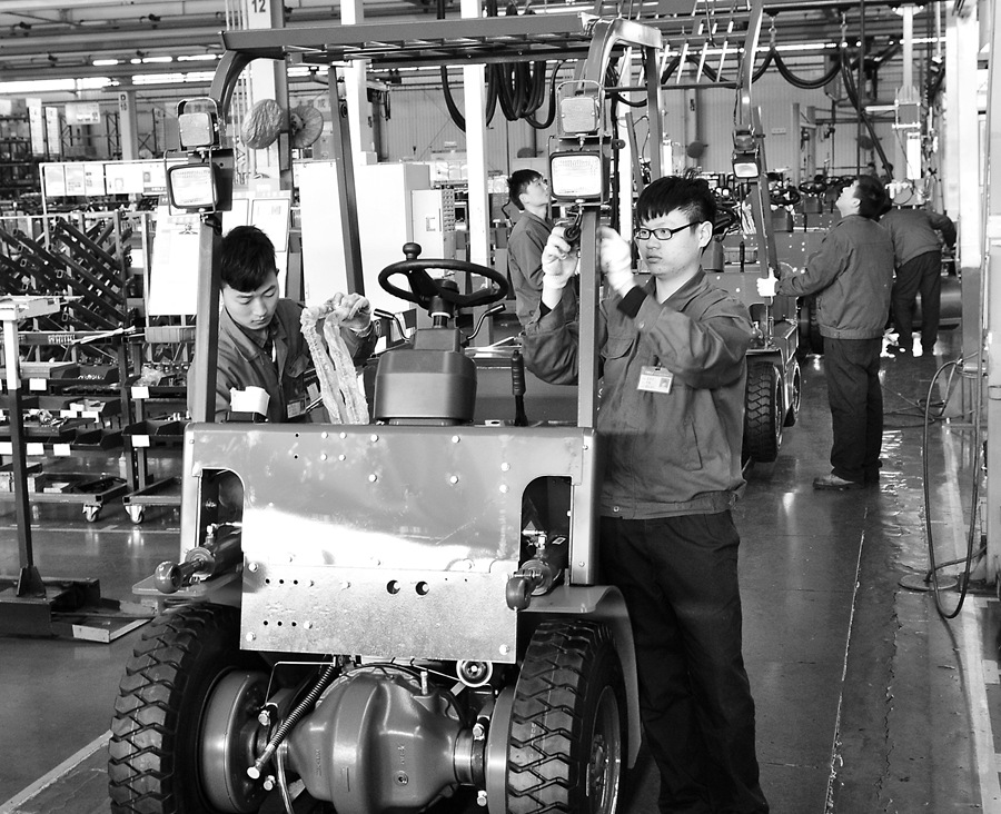 2月15日,安徽叉車集團電動事業(yè)部的員工正在組裝出口到歐洲的電瓶叉車。作為國家創(chuàng)新型企業(yè)和國家火炬計劃重點高新技術(shù)企業(yè),2015年,該公司實現(xiàn)整機產(chǎn)銷75000臺,營業(yè)收入近60億元,其中出口叉車11000多臺,連續(xù)25年保持全國同行業(yè)第一。