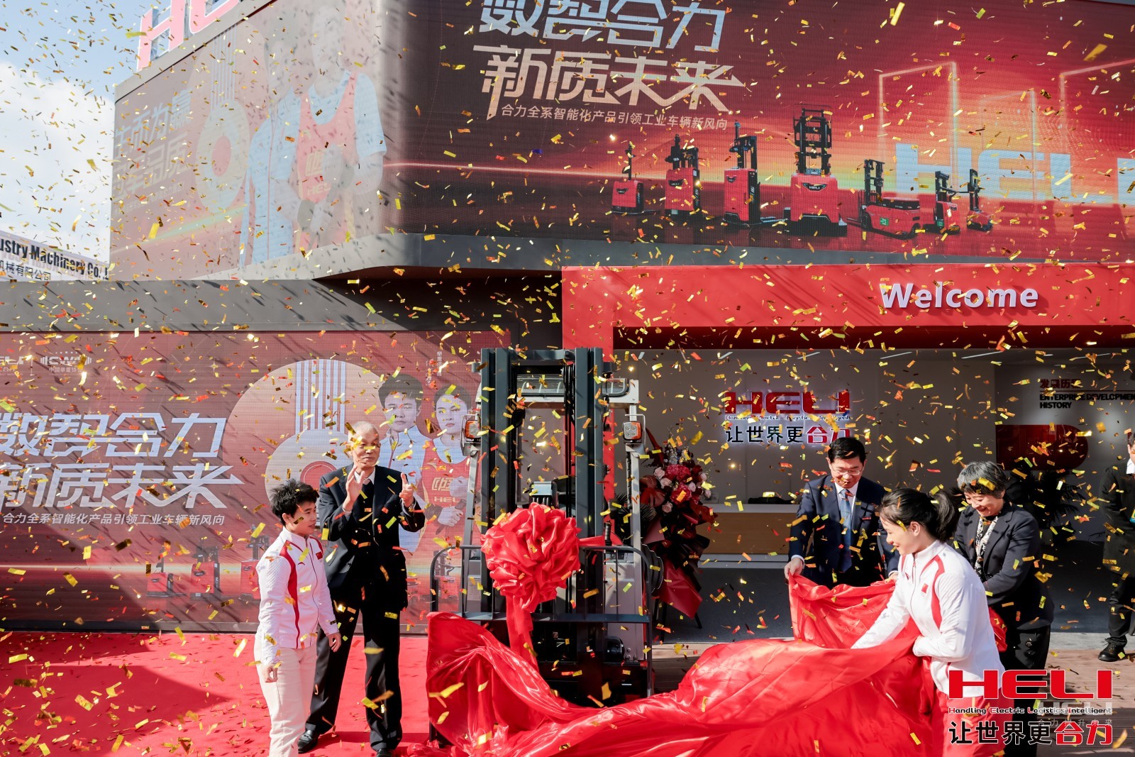為順應(yīng)行業(yè)高端化、智能化、綠色化發(fā)展趨勢(shì),滿(mǎn)足不斷變化的市場(chǎng)需求,合力在本次展會(huì)發(fā)布自主研發(fā)的重磅創(chuàng)新產(chǎn)品G3系列1.3-2t前輪雙驅(qū)三支點(diǎn)鋰電叉車(chē),助力行業(yè)綠色高效發(fā)展?,F(xiàn)場(chǎng)邀請(qǐng)到中國(guó)舉重奧運(yùn)冠軍侯志慧、羅詩(shī)芳,中國(guó)工程機(jī)械工業(yè)協(xié)會(huì)榮譽(yù)會(huì)長(zhǎng)祁俊、工業(yè)車(chē)輛分會(huì)秘書(shū)長(zhǎng)張潔,安徽叉車(chē)集團(tuán)黨委委員、安徽合力股份公司黨委副書(shū)記、總經(jīng)理周峻等重磅嘉賓參加此次新品發(fā)布會(huì)并為新品進(jìn)行揭幕。